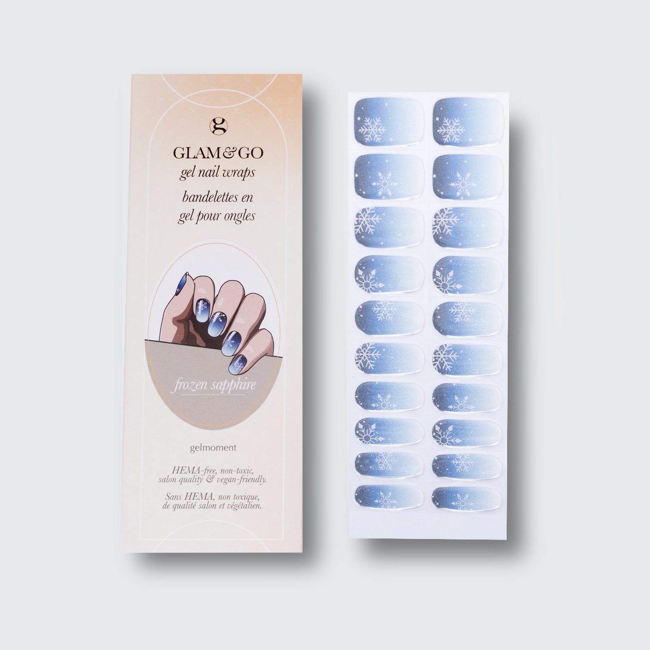 Plus, not only do GLAM & GO gel nail wraps provide the same glossy finish you know and love from our regular gel polish, but they are also HEMA FREE and have a wear time of up to 14+ days.